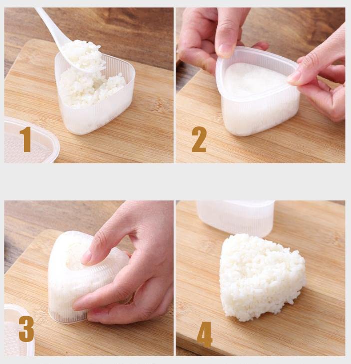 Specification: 2 Paar Transparante Praktische Keuken Bento Decoreren Sushi Onigiri Mold Voedsel Druk Driehoekige Vorm Rijst Bal Maker Accessoires