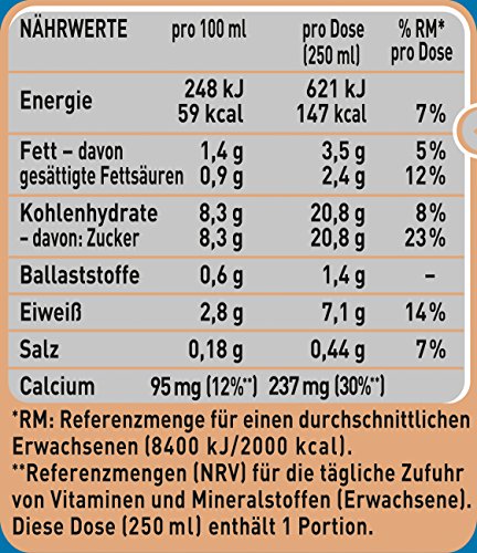 Ingrediënten: 75% vetarm melk, 25% koffiedrank [water, suiker, 0,8% instant-bonenkoffie, stabilisator (E460, E466), aroma’s, zuurregulator (E500, E332)].